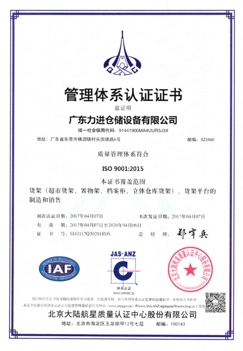 ?2016年5月    更名為廣東力進倉儲設備有限規公司,搬遷至東莞市橫瀝鎮村頭工業區,占地面積12800平方米。